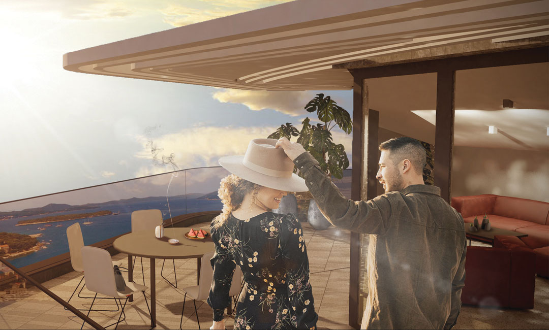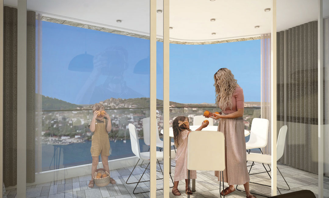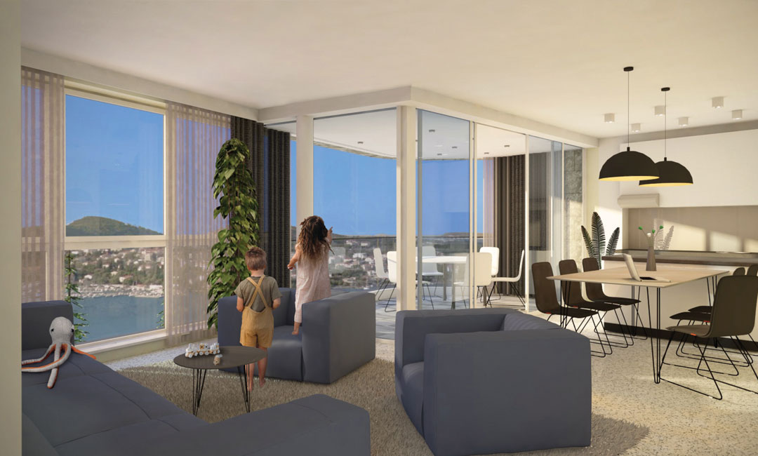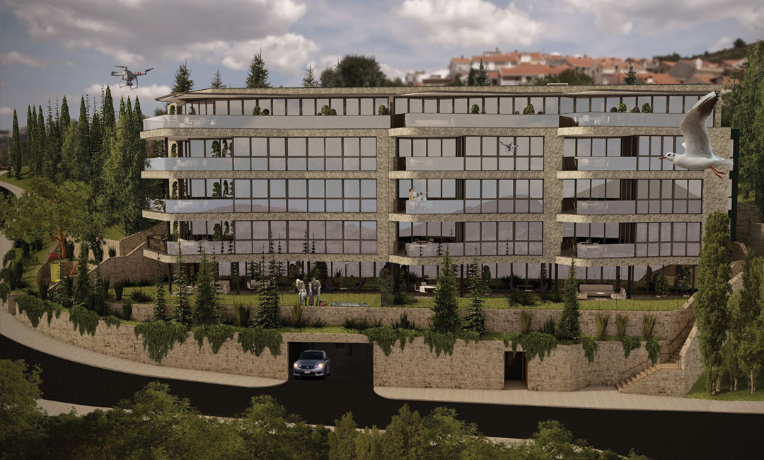 Projekt se sastoji od lamele A i B. Lamela A sadrži jedan stan po etaži što je ukupno 5 stanova veličine od 90 m2 do 125 m2 . Lamelu B čini ukupno 8 stanova veličine od 85 m2 do 150 m2, raspoređenih po jedan ili dva stana na svakoj etaži. Stanovima pripadaju terase koje omogućuju maksimalno uživanje u blagodatima Sunca i beskrajnom pogledu na Jadransko more. Projekt je krenuo sa izgradnjom u 2021. a završetak je planiran početkom 2023. godine.